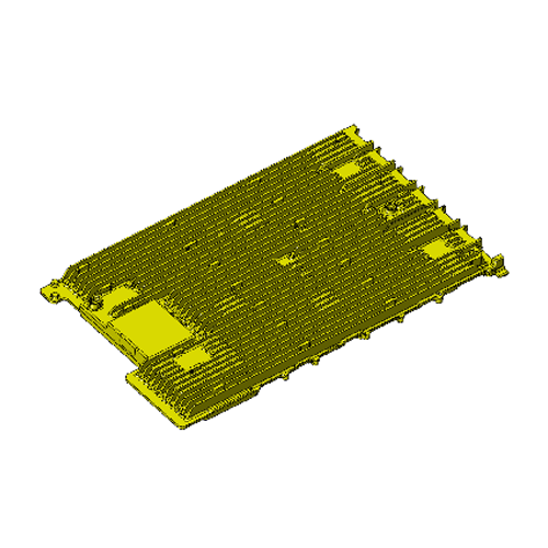 該產(chǎn)品平均壁厚2.5mm,平面度要求0.5mm,采用梳妝新型流道確保產(chǎn)品在填充速度、模溫、同步生產(chǎn)中的一致性,保證了產(chǎn)品表面整體成型以及平面度。