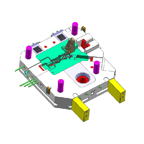 大角度斜行位,采用彎銷結構,斜行位運行前,彎銷先松動斜行位。斜行位合模后,彎銷鎖緊斜行位,避免生產時斜行位退位。還包含有一處行位鎖緊行位的結構。